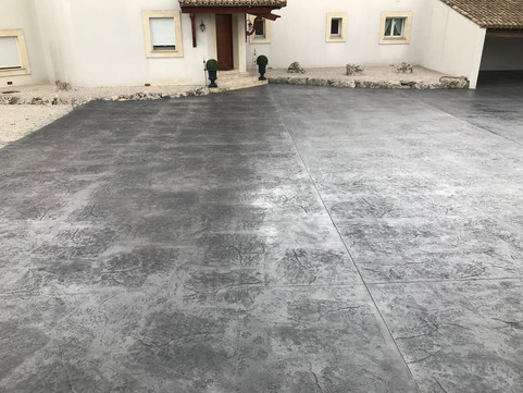 ▶️ Aménagement extérieur en béton imprimé façon roche couleur basalte